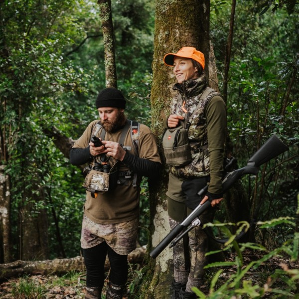 Photo: Callum Sheridan and Ashlee Strange on a NZDA promotional hunt, 2021.