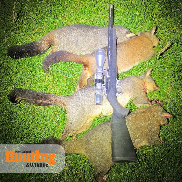 Over the last 30 years, I have really looked forward to those spotlighting nights on the farm. I found the best part of the year to do this was in the late autumn. By then, most paddocks were empty of stock, our lambs had gone to the freezing works, our hoggets were being break-fed on swedes, and our ewes being strip-grazed around our grass paddocks. I would pick mild nights with a forecast minimum of 10 C and no moon. In the early days, I would use a separate spotlight, but I found that tricky, trying to line up a possum or hare through the telescopic sights while holding the spotlight, one needed to be a contortionist. Then I mounted a spotlight on top of my scope, but as I got older, I found swinging the rifle around all night rather tiring. The last few years, I have been using a head-torch, specifically a Ledlenser H15R Core, not cheap but very effective. It is rated at 2,500 lumens. The only difficulty is positioning the light on your head so that it lights up the subject in the scope. I found that a battery charge would last about five hours, enough for a night’s spotlighting.