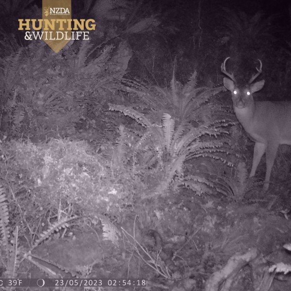 We went on a little further, and Mike pointed out the scrape where he had a trail camera set. A buck had visited and could be seen mouthing the foliage overhanging the scrape. I left Mike a little later to head over to Murray’s spot. He was having a night off, and I thought I might get a look at the camera buck. Just before dark, I heard Mike shoot, and after a few whistles to each other, I caught up with him and the evidence of a solid hit, but by this time, it was as dark as the inside of a tunnel. Headlights on, we couldn’t find the deer in the ferns where he said he had heard it. He said it was a young animal, and I was so pleased it was not the buck, and I felt guilty about intruding on Murray’s territory. I checked the trail camera as we left and saw the same buck had been passed at 11.30pm the previous night for the fifth time. The following morning, four of us went back, and after some fruitless searching in the ferns, we found the dead yearling in the area's most open piece of bush.